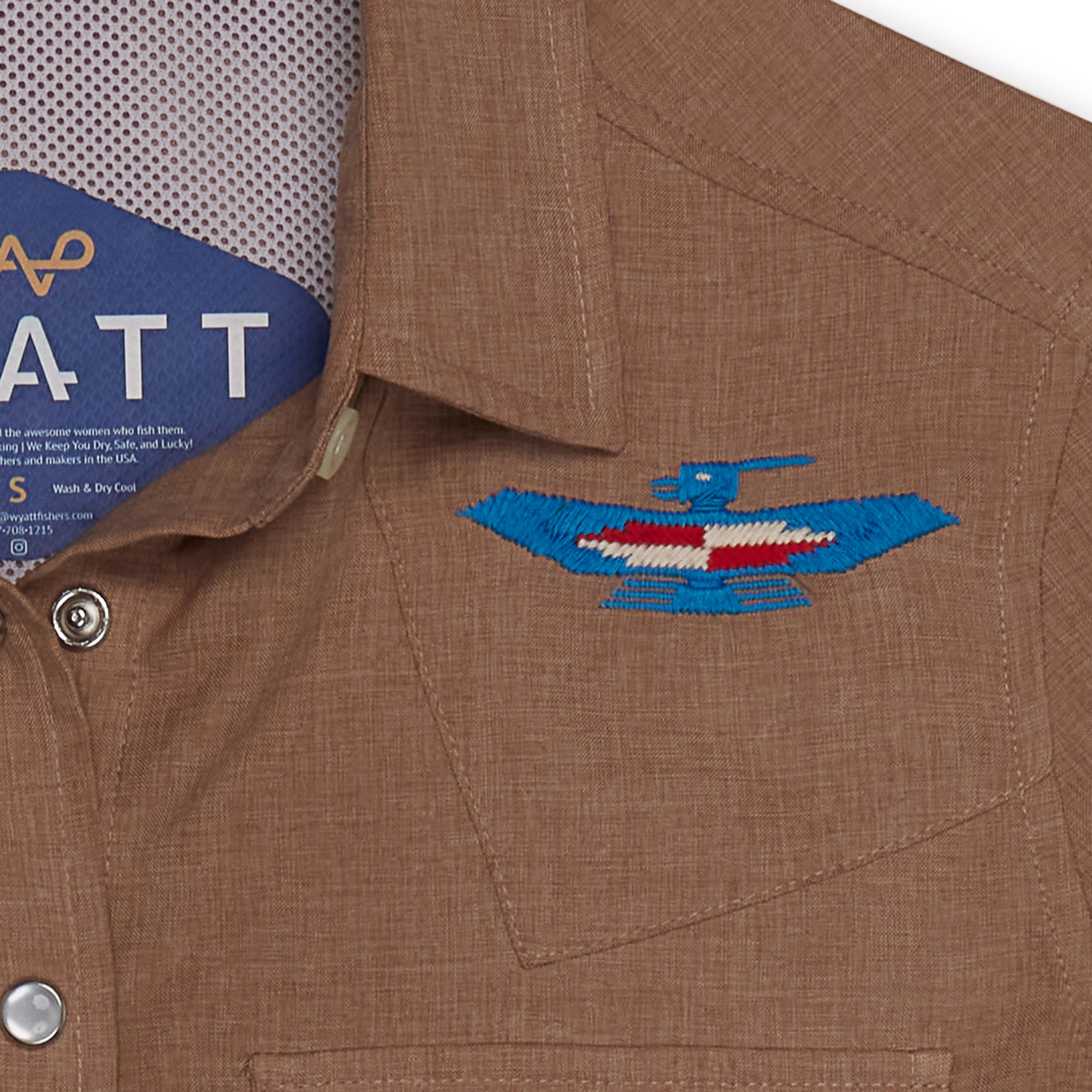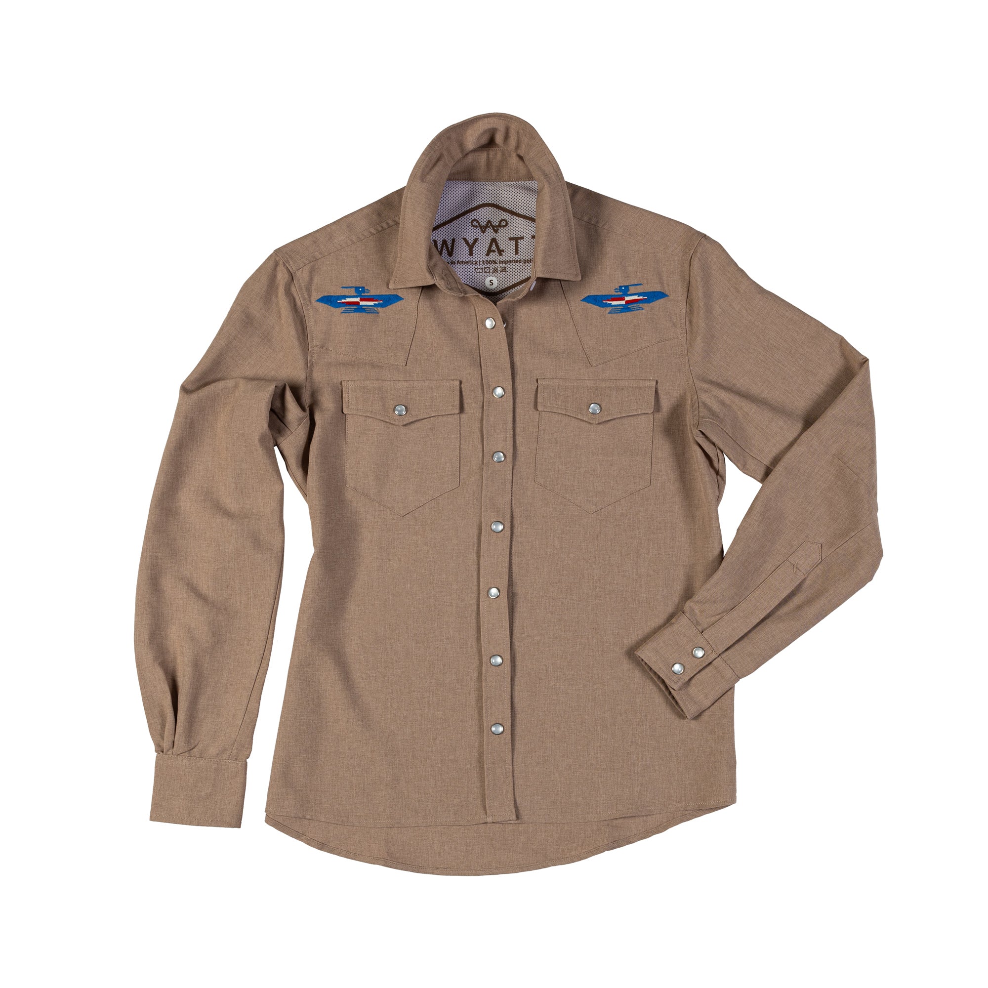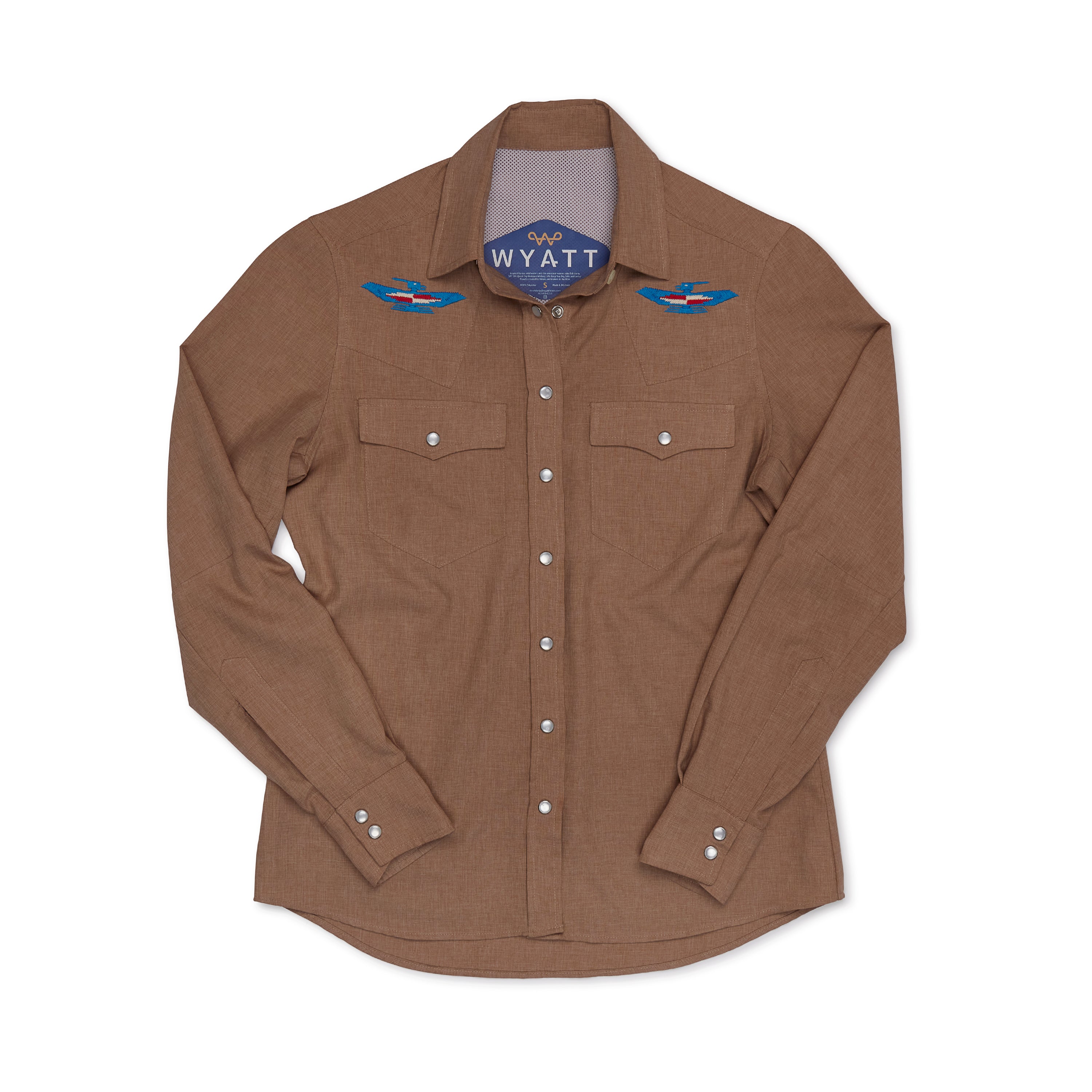 Fashion and function have finally met. The feel will get your attention, softer than you imagine. The fit is made just for you, slightly tapered through the body. The performance qualities give you reason to start everyday with WYATT, UPF 50+, moisture wicking, quick dry and vented in the back for your comfort. They look so good you’ll want to finish your day in WYATT too. The pearl snaps are another reason you will want more than one. Wear the heck out of your WYATT shirts knowing they are washer & dryer safe. We checked all the boxes to create your perfect shirt. Inspired by women who light their own fire.